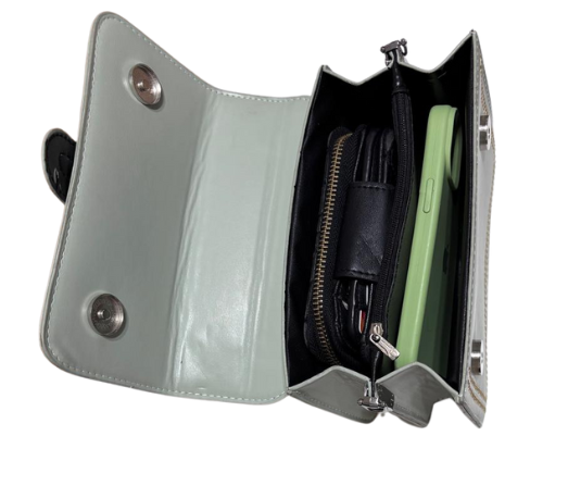 Cuenta con dos compartimientos, mas un bolsillo pequeño con cierre ideal para llevar credenciales