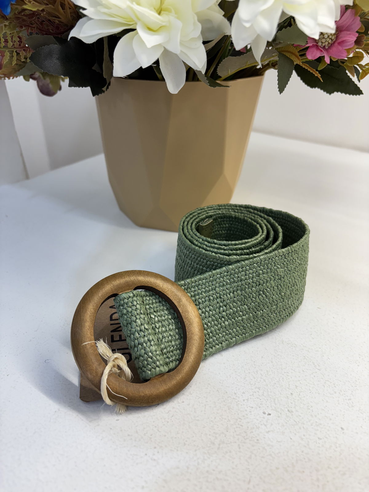 CINTOS DE RAFIA CON HEBILLA DE MADERA